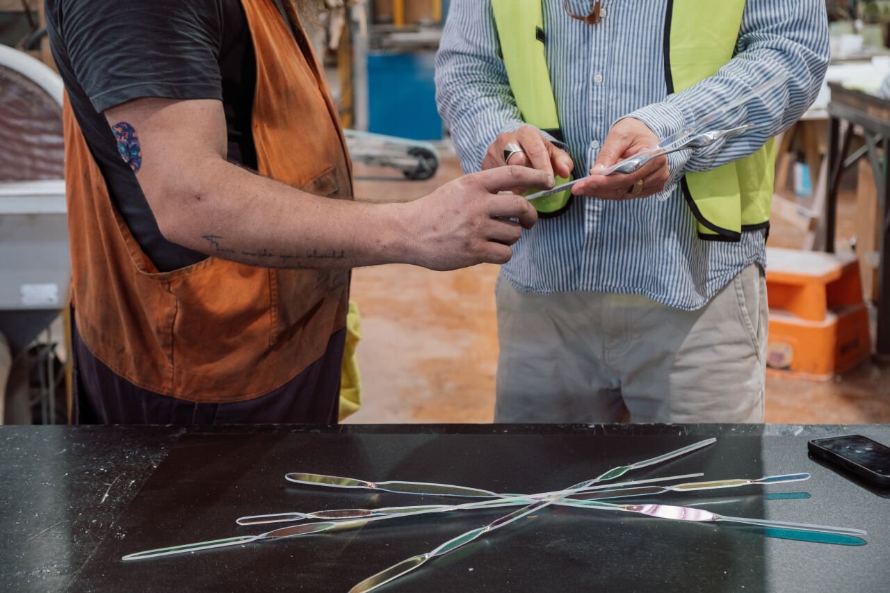 (TG): My recent residency at UAP was instrumental in expanding how I think about my visual language, particularly in relation to shape, form, and materiality. Over two weeks, I worked closely with the design team and spent time on the factory floor experimenting with a wide range of materials and fabrication processes. This collaborative, hands-on environment opened up new ways of thinking and making, especially in relation to my current project ASTROGAZE, which explores the Cosmos of Lutruwita / Tasmania. The residency sparked a new level of excitement about the possibilities ahead—seeing ideas move from concept into sculptural form revealed powerful new pathways for my practice and has reshaped how I imagine this project evolving in the public realm.