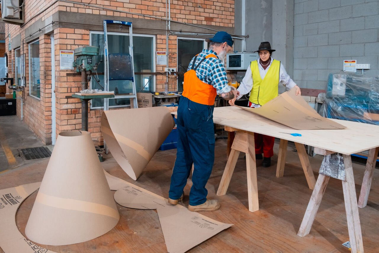 Lindy Lee's Ouroboros is taking shape. Our team in Brisbane is working hard to realise Lindy's vision to create her first immersive public sculpture for the National Gallery of Australia's forecourt.
