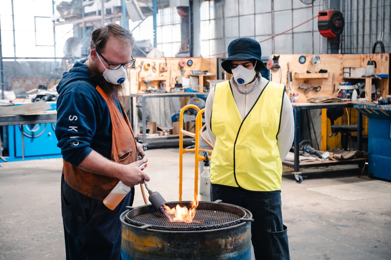 Occasionally, a project will reach the floor that requires an especially complex casting process – recently, this challenge came in the form of Libby Harward’s Piccabeen Basket, a work conceived in collaboration with Judy Watson for Gold Coast’s HOTA.