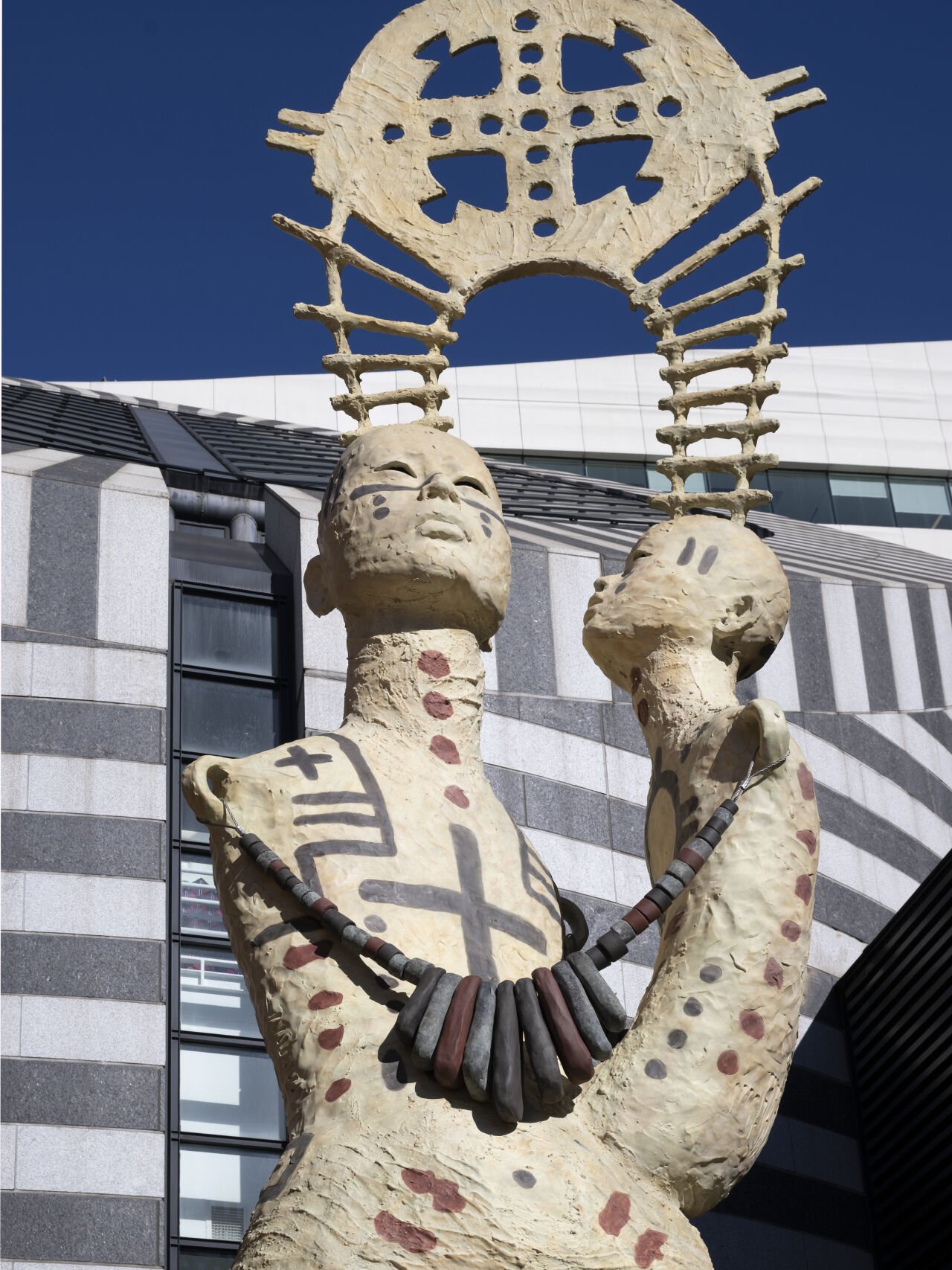 The work is a profound, site-specific tribute to the Indigenous peoples of California, reflecting on the urban landscape that still bears scars from the colonial violence of the Mission system. ‘Behold’ refuses to let us forget the history of displacement faced by Native communities.