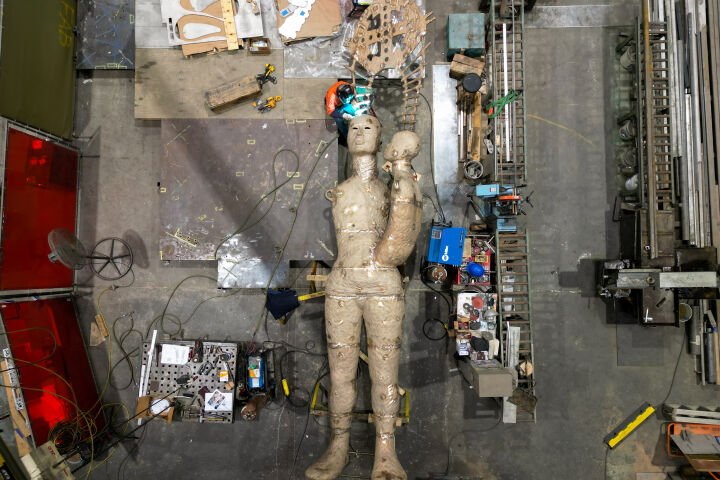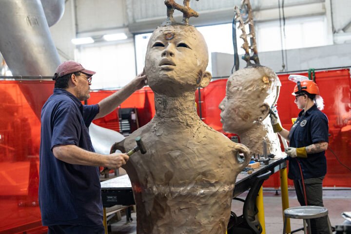 One of her most notable works, Behold, is a monumental sculpture standing nearly 25 feet tall and weighing 3380 pounds, capturing the bond between a mother and child. The piece features beads strung along their shoulders, symbolising their emotional connection, complemented by a large ladder that signifies their mental bond. Simpson’s artistic vision draws parallels between the growth of children and the branches of a tree, highlighting the deep-rooted relationships that shape our identities and experiences.