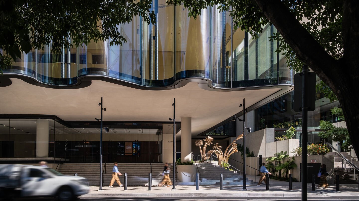As the Glasshouse Theatre’s Art Project Manager, we collaborated with Blaklash, a First Nations design studio, to develop the EOI call-out and artist selection process. We worked closely with panels of subject matter experts, including the project’s Art First Nations Selection Panel and the specialist advisors, which consisted of prominent Queensland-based arts leaders, artists, curators, and First Nations representatives. This group provided guidance on artist shortlisting and commissioning. Together with Blaklash, we also assisted in the artist briefing, contracting, and artwork concept development processes. Ultimately, we managed the commissioned artwork design development, fabrication, and installation for the winning artist, Brian Robinson.