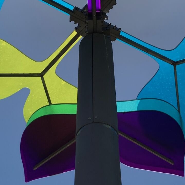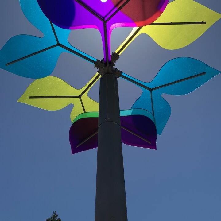 Our Rock Tavern team designed the artwork within budget constraints, selecting materials and coordinating engineering specifications for permit applications. We completed the technical design, oversaw fabrication, sandblasted stainless steel tubes, and worked with Hypersonic to overcome challenging design requirements to get the leaves to spin independently.