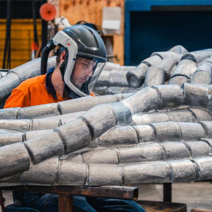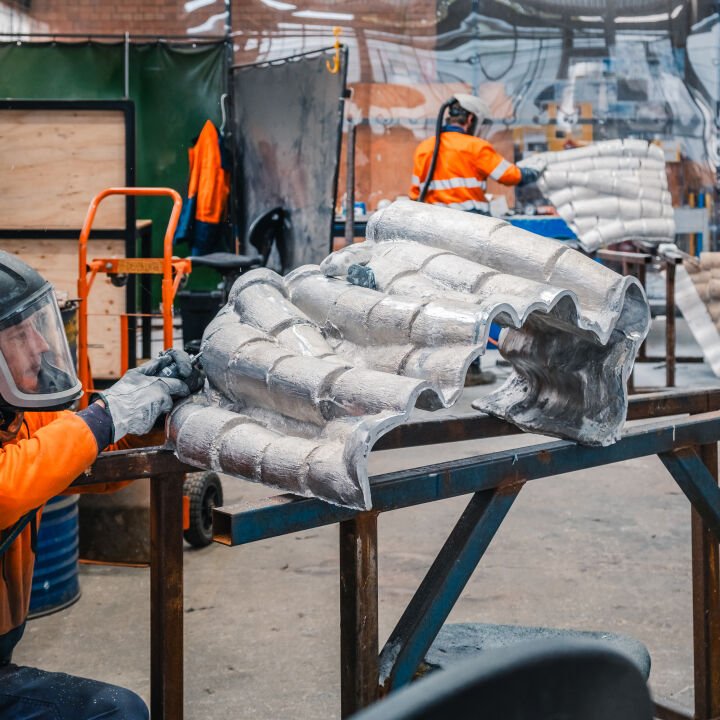 Return of the Gadi Reed welcomes people at the entrances to Gadigal Station. The monumental sculptural artwork references necklaces traditionally made from native reeds. Through Rowena’s cultural revitalisation work, this piece contributes to the understanding of Gadigal culture and the reed that was prevalent across Coastal Sydney, including the Gadigal clan estate.