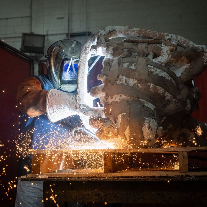 Our Rock Tavern team made two trips to Gibson’s studio in Hudson, NY, to digitally scan the original maquettes of the deer, hawk, squirrel, and coyote. Our digital team processed the data and created three-dimensional files to prepare for digital sculpting. They collaborated directly with Gibson to adjust the designs, adding texture and beads to enhance the sculptures using augmented reality (AR) headsets. During the fabrication process, the Rock Tavern team first created PMMA prints of the deer, hawk, squirrel, and coyote. They were then shelled and cast in silicon bronze. The metal was removed from the shells and sent to the welding department. Gibson personally supervised the application of the patina to ensure that each sculpture aligned with his artistic vision, giving the sculptures a unique and weathered appearance.